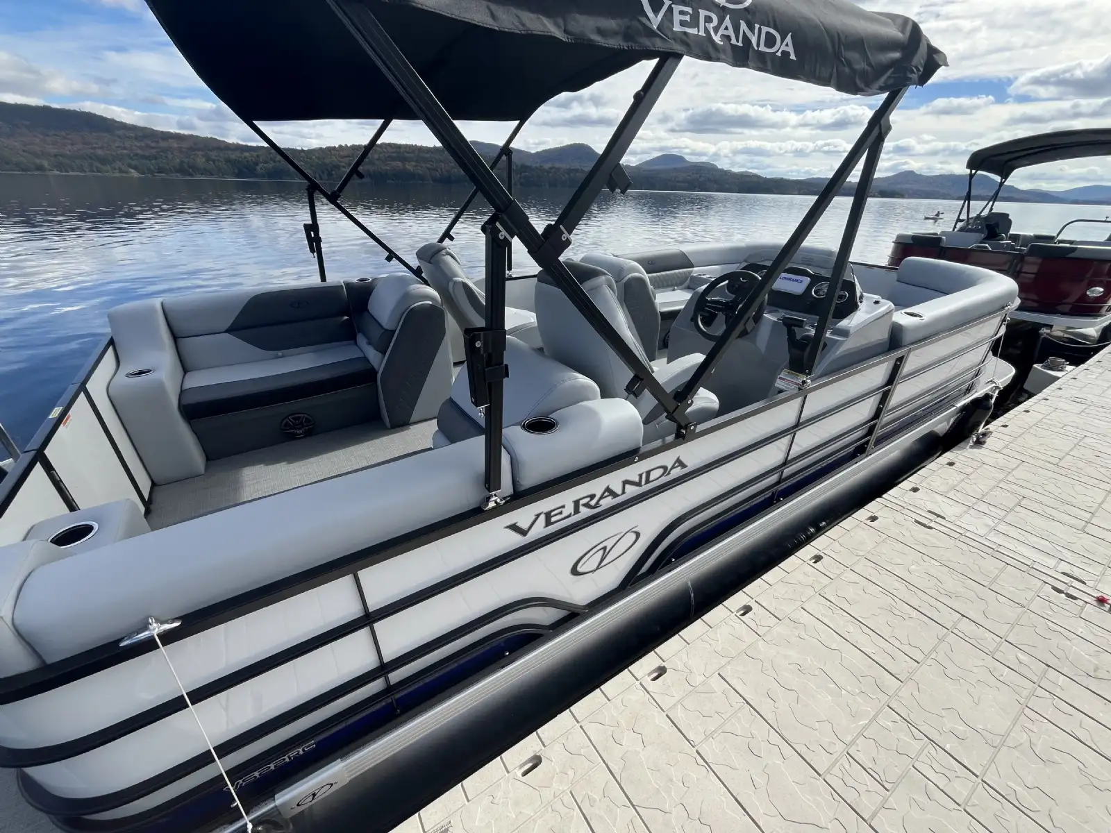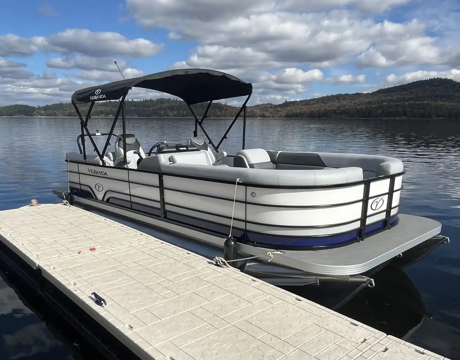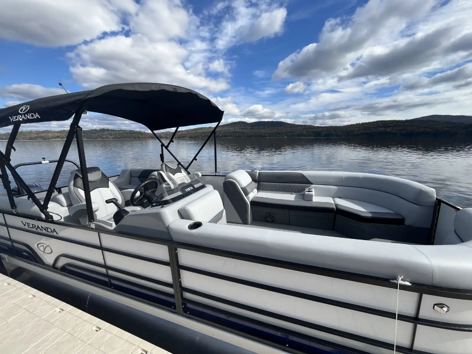 The Vista Sport 22RC is powered by a 150HP Yamaha 4 Stroke and is sute to catch an eye with its sharp look. A bundle of luxury standard features will maximize your comfort and entertainment, including reclining chairs and four-corner couch seating in Dolphin Grey, an open storage area under the console for the cooler, a Kicker Bluetooth audio system with four 6.5″ Clarion speakers and an 8″ Bazooka subwoofer, and RGB controller with lighted cupholders at the helm. Captains will appreciate the black powder-coat aluminum and SeaDek-lined raised helm platform and courtesy light when navigating. The new Veranda Vista Sport is your affordable and stylish passport to water sports excellence!