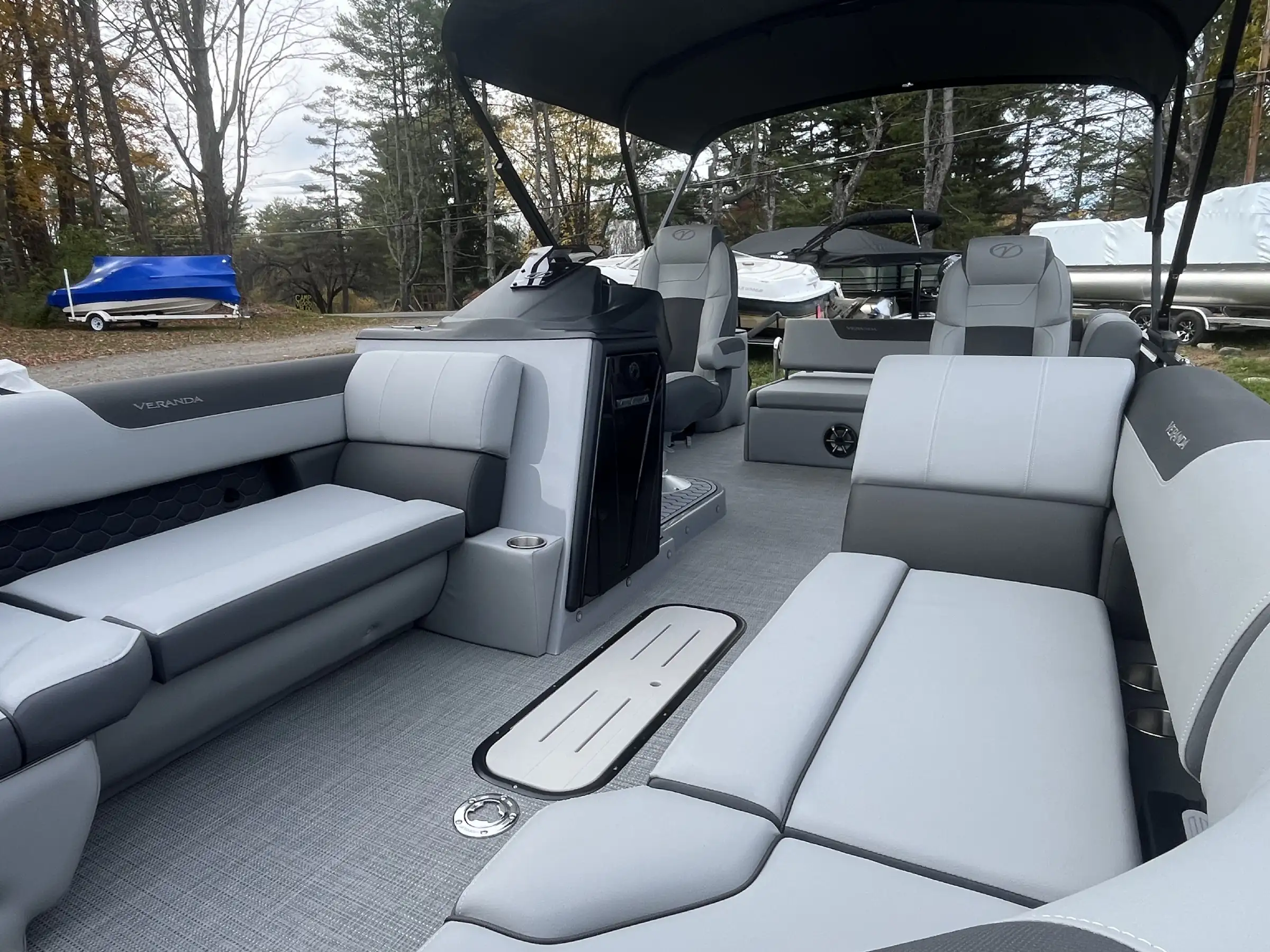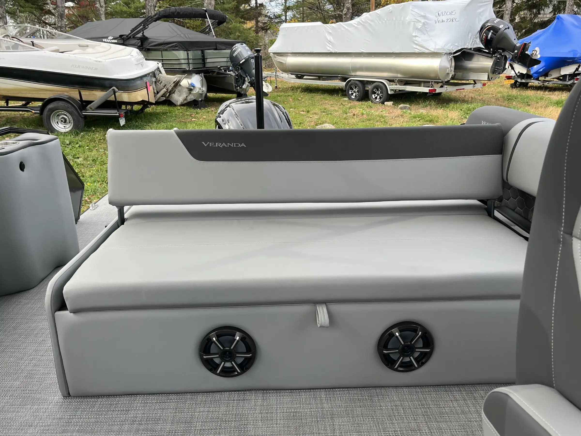 Built on Veranda’s patented all-aluminum deck system, the VR235VL offers a rock-solid, quiet, and maintenance-free foundation — no wood, no rot, no worries. The rear lounge layout (VL) provides plush seating, and abundant storage, ideal for entertaining, sunbathing, or cruising in total relaxation.